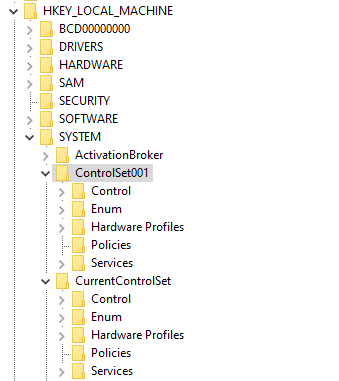 The standard Windows Registry contains some keys that are not real keys, but instead are symbolic links (or simply, links) to other keys. For example, the key HKEY_LOCAL_MACHINE\System\CurrentControlSetis a symbolic link to HKEY_LOCAL_MACHINE\System\ControlSet001 (in most cases). When working with the standard Registry editor, RegEdit.exe, symbolic links look like normal keys, in the sense that they behave as the link’s target. The following figure shows the above mentioned keys. They look exactly the same (and they are).