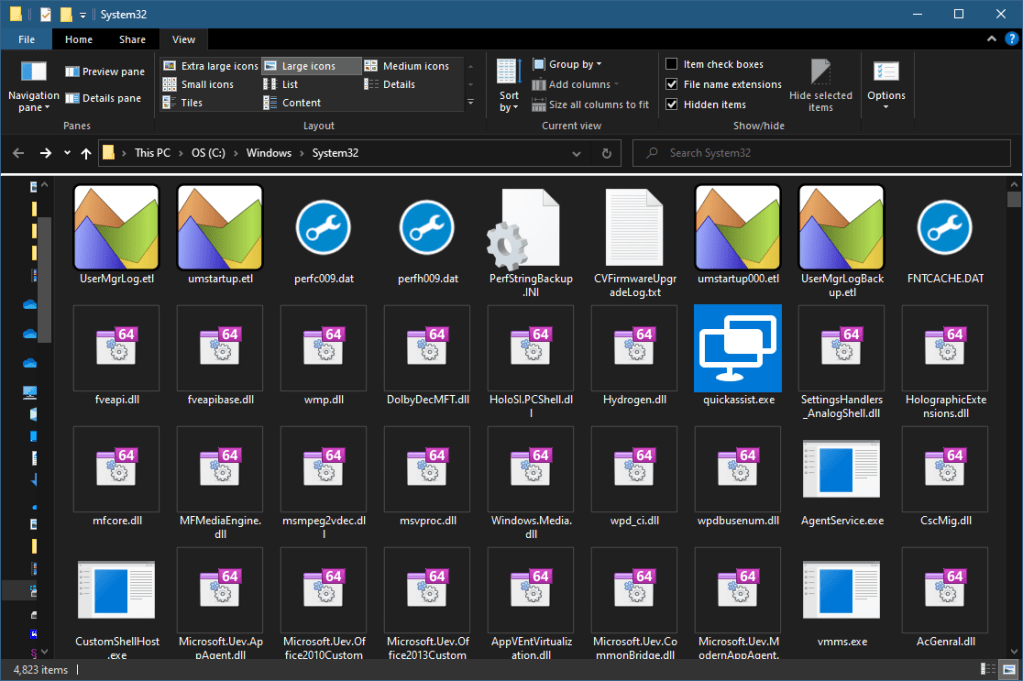 The Shell provides many opportunities for extensibility. An Icon Handler is one of the simplest, but still requires writing a full-fledged COM component that implements certain interfaces that the shell expects. Here is the result of using the Icon Handler DLL, showing the folders c:\Windows\System32 and c:\Windows\SysWow64 (large icons for easier visibility).